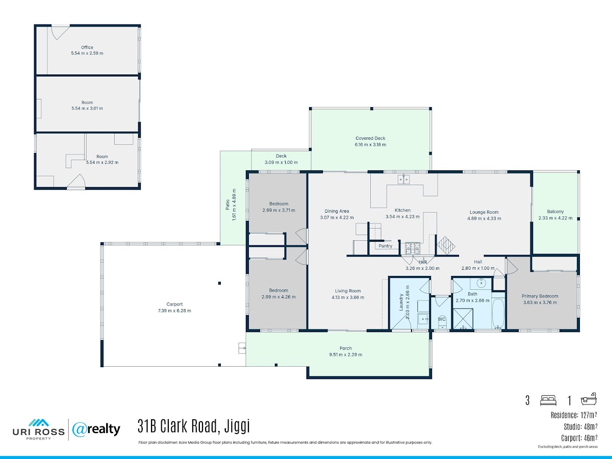 The main residence, a 3 BDR home, features a floor plan designed for comfortable everyday living. The open plan kitchen, living and dining flow to the covered deck with a nice rural outlook, while the large lounge room connects to the balcony, creating an easy indoor–outdoor flow.The primary bedroom is positioned separately and features a split system AC unit, , while additional bedrooms are well sized plus modern main bathroom with tub. A practical laundry, ample storage and a generous carport further enhance the home’s functionality.