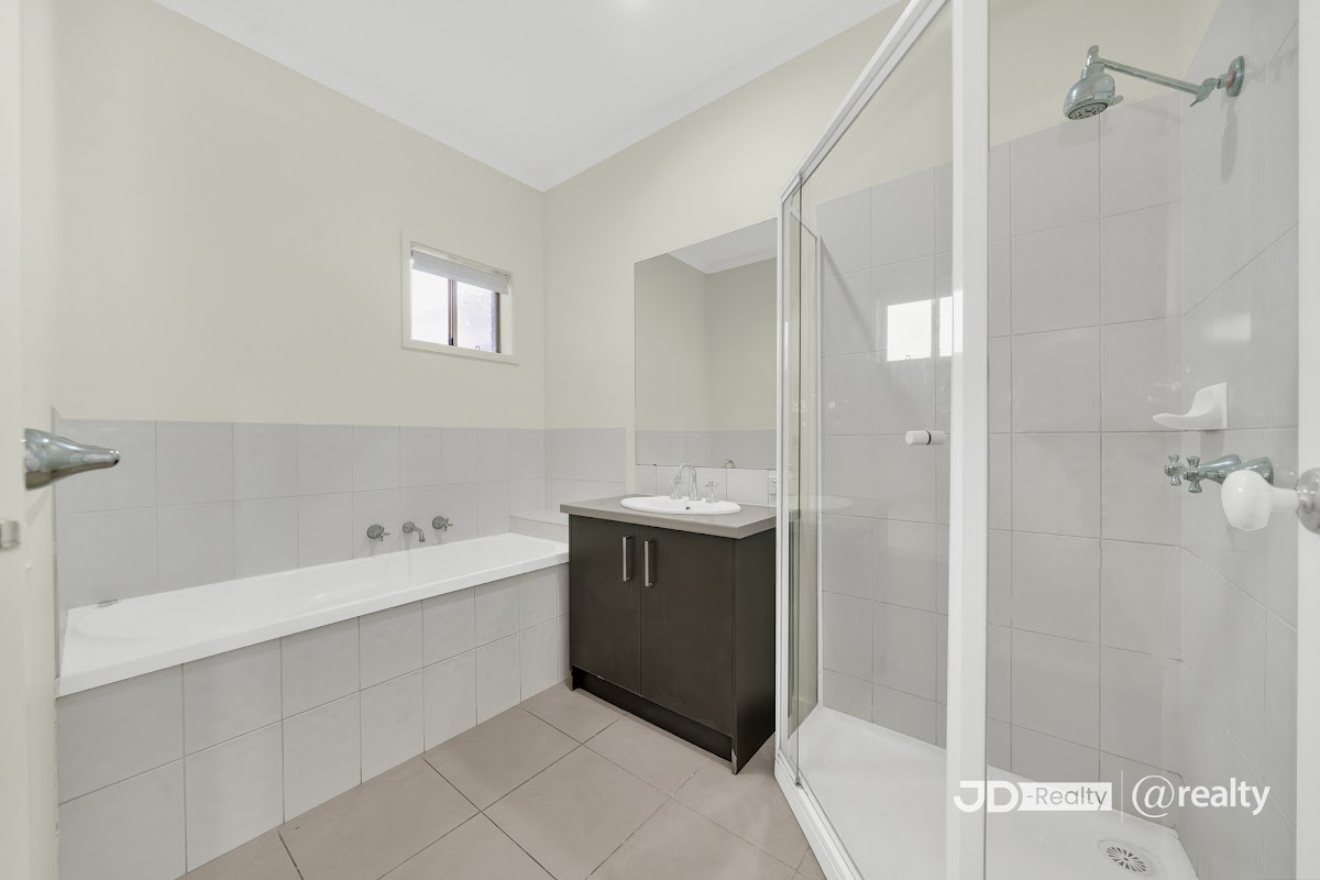 All three bedrooms are equipped with built-in robes, with one offering access to a courtyard – a perfect spot for morning coffee or an afternoon read. The bathroom is designed for relaxation with a separate shower and bathtub, complemented by a vanity cupboard and a separate toilet.