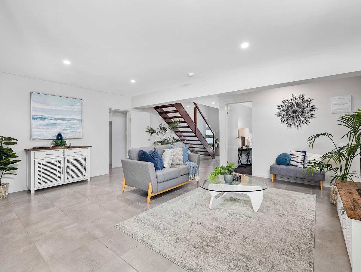Located on the upper floor, the modern kitchen will become the central heart of the home. Presenting sleek stone bench tops, large island bench, ample storage space, state of the art appliances and a mirror splash back. There is a spacious living/dining area completing the space. Flowing from the main living areas is an expansive all weather outdoor deck, ideal for entertaining with great district views. There are 2 decent sized bedrooms on this upper level with a large bathroom with huge linen cupboard serving these rooms. The Master is very special, spanning the width of the home, there is ample space for a lounge or desk and has a great ensuite and walk-in robe. There are sliding doors leading out to the deck too!