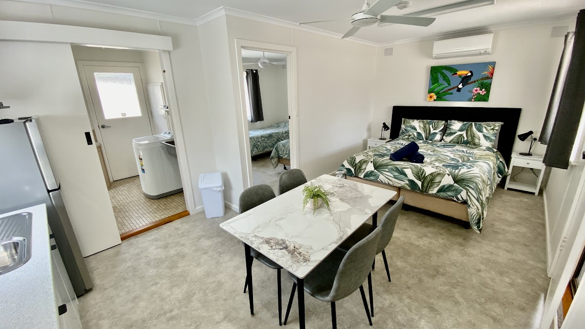 Each guest unit features 2 bedrooms, a kitchenette with dining setting, combined laundry, shower and toilet — providing comfortable, practical accommodation for professionals travelling through, families, fishing groups and holidaymakers.