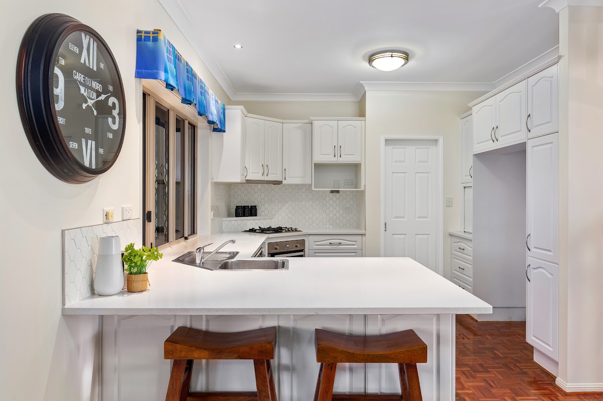 * Gorgeous renovated kitchen with 40mm thick stone benches, quality appliances including dishwasher & gas cooktop, a walk in pantry and providing a servery out to the entertaining deck