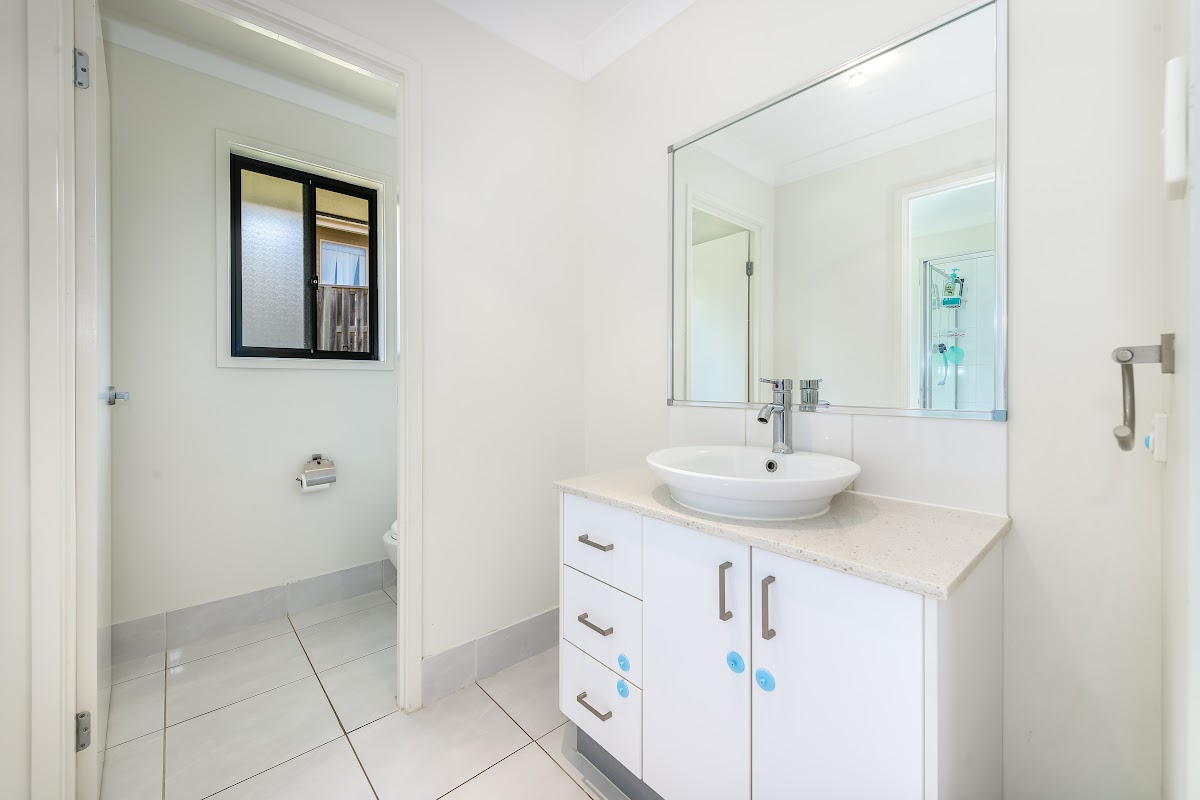 The family bathroom has a separate toilet and teh big and functional Laundry also opens out to the back yard on the “private” side of the house away from your entertainment area.