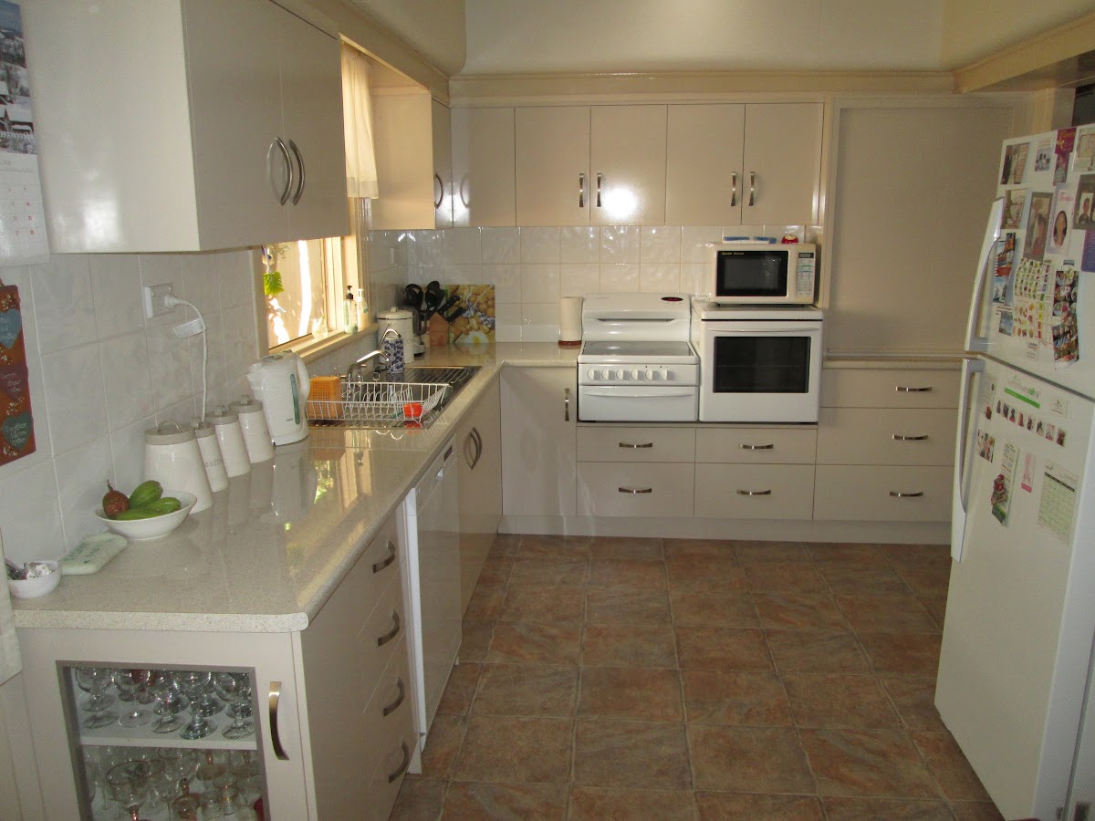 * New gloss kitchen with plenty space and dishwasher.