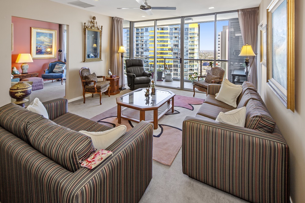 Inspiring with internal appeal this luxury apartment at the Iconic VICTORIA TOWERS will seriously impress. Modified beautifully with a distinct FRENCH Influence – the Owner was a retired interior designer and has spared no expense with his timeless touches. Starting with the magnificent views of the Pacific Ocean, Hinterland your lazy retirement days can be spent on the never ending balcony with friends just thinking about what to do and where to go next . Newly installed balcony shutters provide privacy and the apartment is totally wheelchair friendly from the wider doorways to the shower room and hand rails already installed.