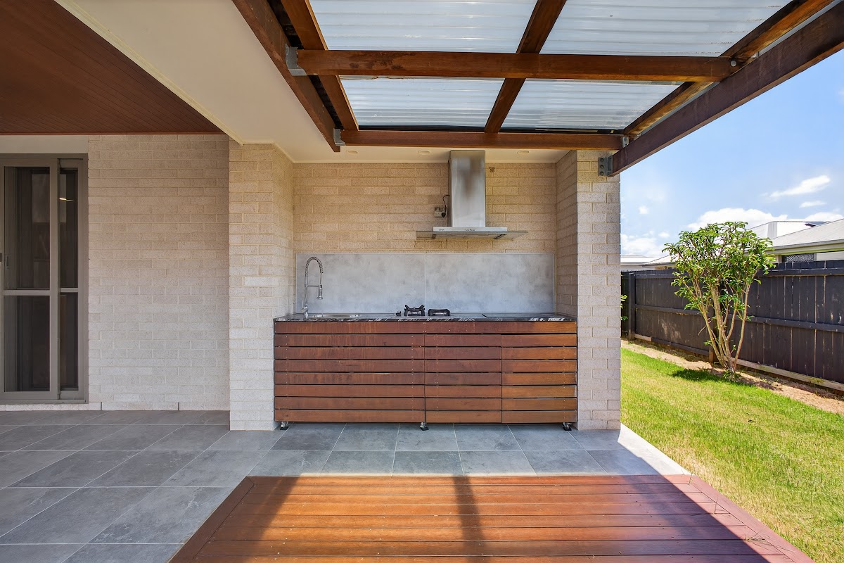 Outdoors, the impressive covered alfresco area features a dedicated outdoor kitchen, perfect for weekend cookouts or gatherings with friends. The 450 m² block has been cleverly utilised to provide a low-maintenance lifestyle, established plants, and a shed for added convenience.