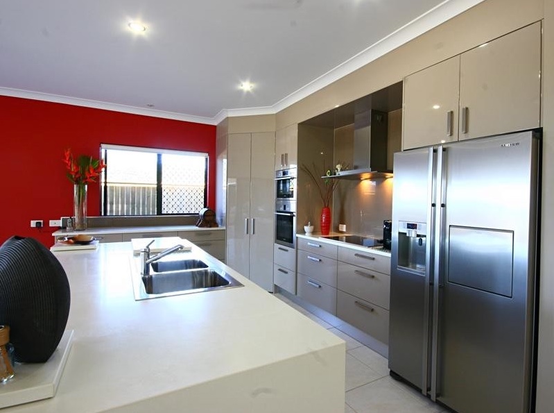 Property features: Be impressed as you walk through the the front door and are greeted by expansive open plan lounge, dining and kitchen, gloss white tiles feature throughout and add to the clean sharp lines of the home. The hub of the home is the large Chefs’ kitchen with Bosch appliances, stone bench-tops, soft close drawers, masses of drawer and cupboard space and full-length breakfast bar. The integrated dining, lounge and family rooms all overlook the massive timber deck patio area and views of the mountain ranges beyond.