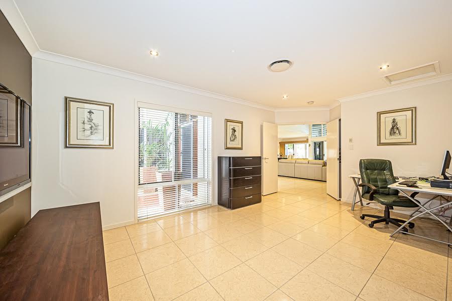 The home provides for a range of living options with the master being located on the top level with walk in robe, en-suite and its own balcony with glimpses of the Pumicestone Passage. Four bedrooms are located on the ground floor with three located in a separate wing with its own living/children’s play area. At the rear of the home is another separate wing which includes a large bedroom with en-suite and living area/kitchenette. An ideal granny flat as the wing has its own separate entry.
