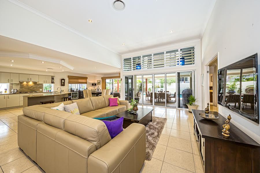This is a spectacular Dwyer built home situated on an 860 sqm block with five bedrooms, four living areas, three bathrooms, powder room and double garage located in one of the best locations on the Island. Of particular note is the self-contained guest/granny flat complete with bedroom, en-suite and kitchenette, ideal for extended family living. Please note that the furniture in the photos of the property has been changed.