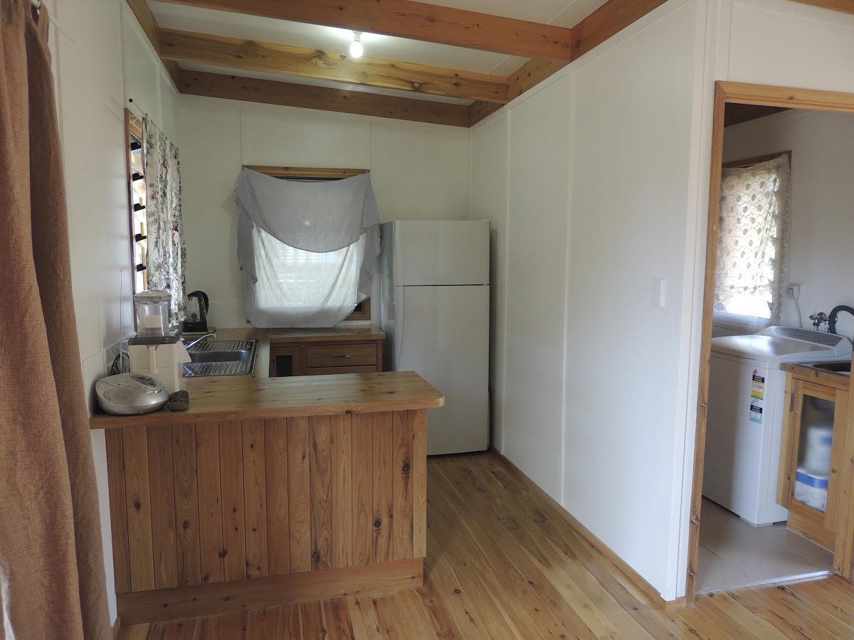 A small vegie garden exists now with more than enough room for a shed, a full house or whatever you want to put on it. Plenty of room to grow your own veggies. Water Tanks x 2 x 500l each available. (the container not included in sale) Washing machine, fridge, single beds all included. New electric hot water system and also plumbed for gas.