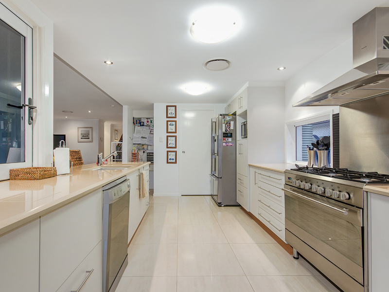 Master Chef wanna be dream kitchen with Caesar stone benches and Blanco stainless steel appliances, also fabulous bi fold windows to serve the alfresco area and great walk in pantry.