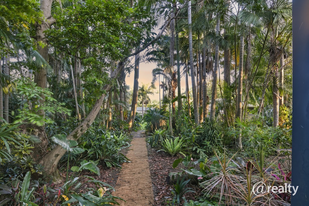 Generous 4,495m² (over one acre), fenced on three sides, bursting with Custard Apple, Jaboticaba, Sapote, Mulberry, Carambola, Blood Orange, Thai Guava, Davidson Plum, Mango, Lychee, Pecan, Camellia, Magnolia, Palms, Gingers, Bromeliads, Orchids, and more.