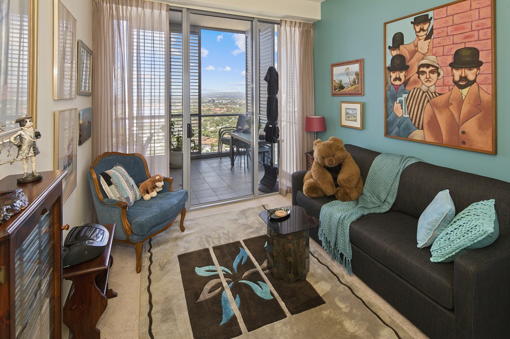Perfectly positioned above the hustle and bustle of city life you are as close to everything that life needs – shops, restaurants, light rail, etc etc.