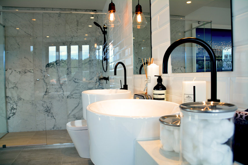 Stone benchtops & luxury black matt fittings throughout