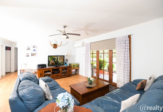 The 3 bedroom lowset brick home offers comfortable living spaces, from the living area with air conditioner, to the light filled screened entertaining/alfresco room, with ample room for the largest of gatherings with family and friends.