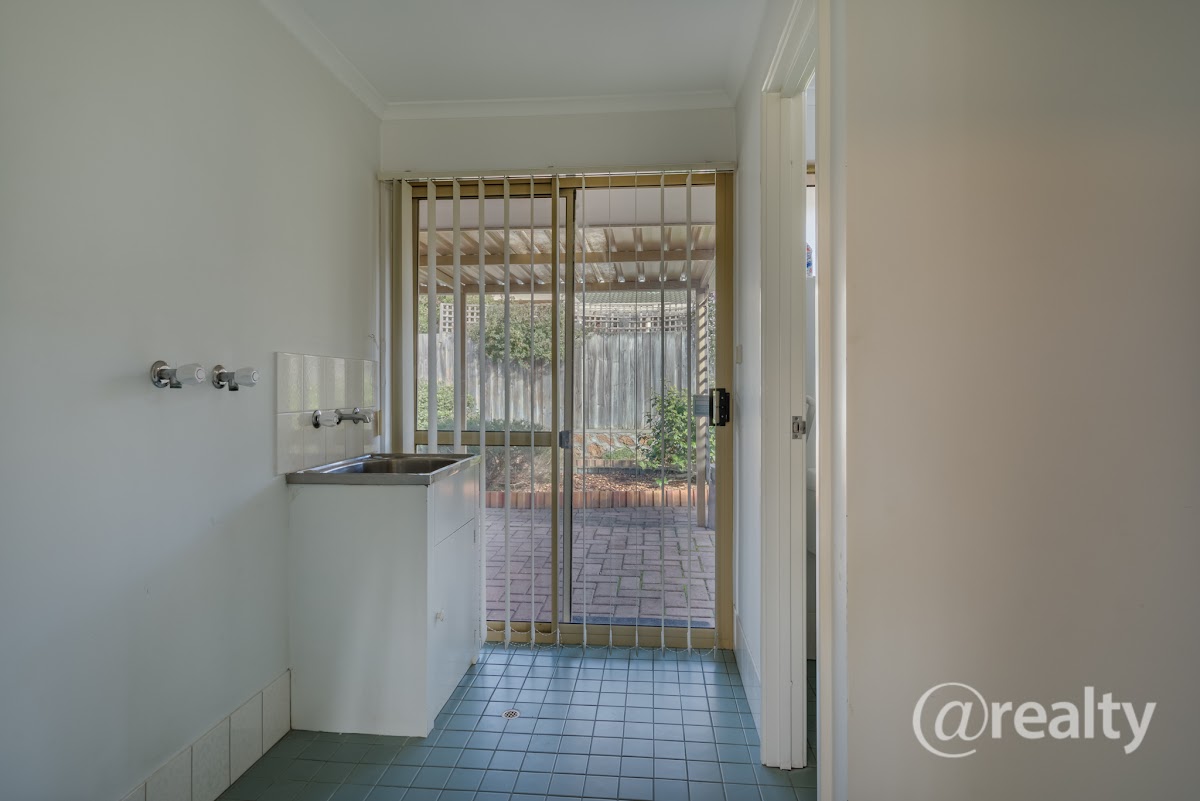To the left is your separate water closet and fantastic size laundry area with a wash trough and direct exit through the glass sliding door to the washing line.