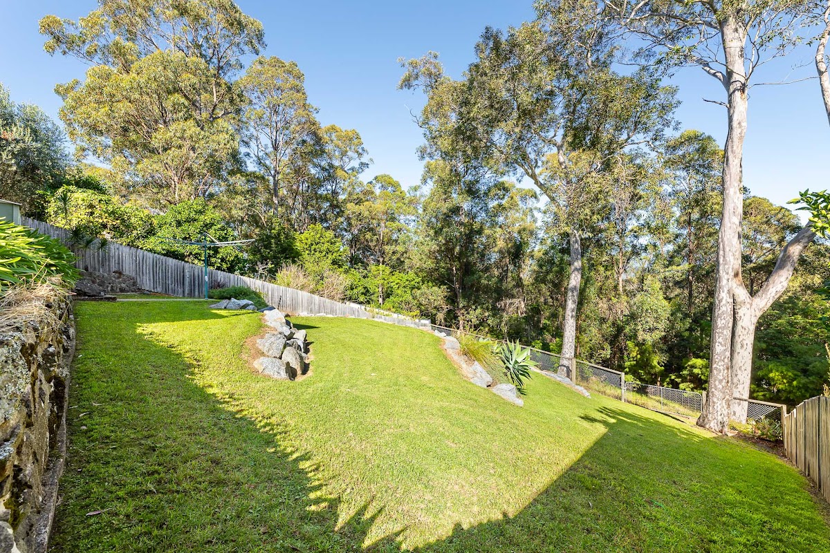 This home benefits from timber floors throughout that run onto an amazing verandah perched up high with spectacular natural outlook and filtered water views. On the winter nights a timber burning heater is toasty and the home also features air conditioning for convenience . A lovely terraced rear garden with feature rock walls and rear gate access really set the scene.