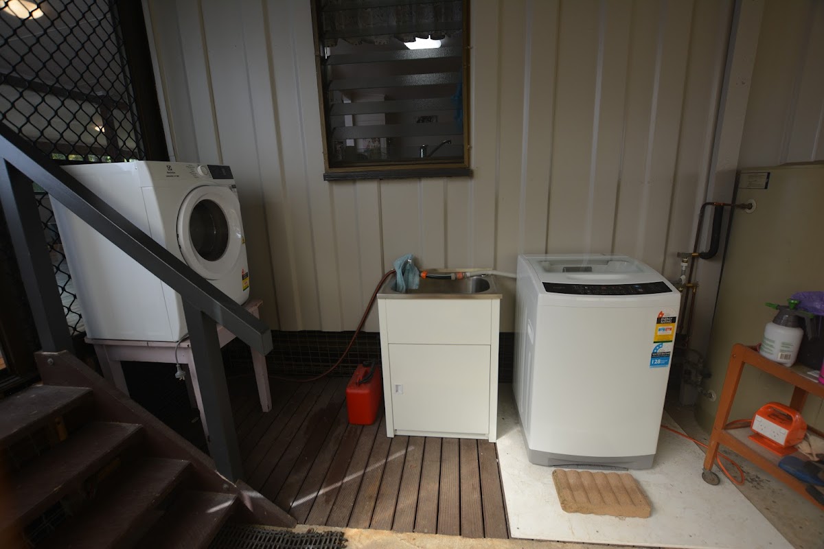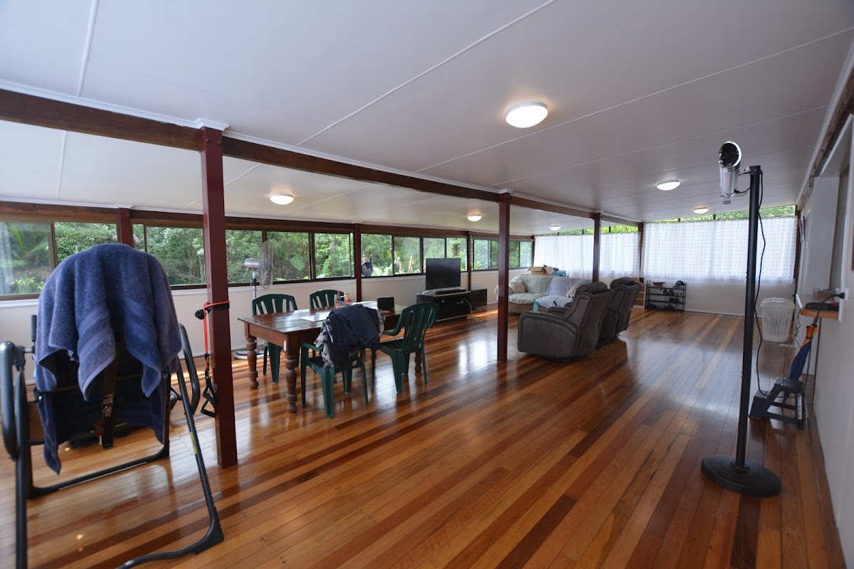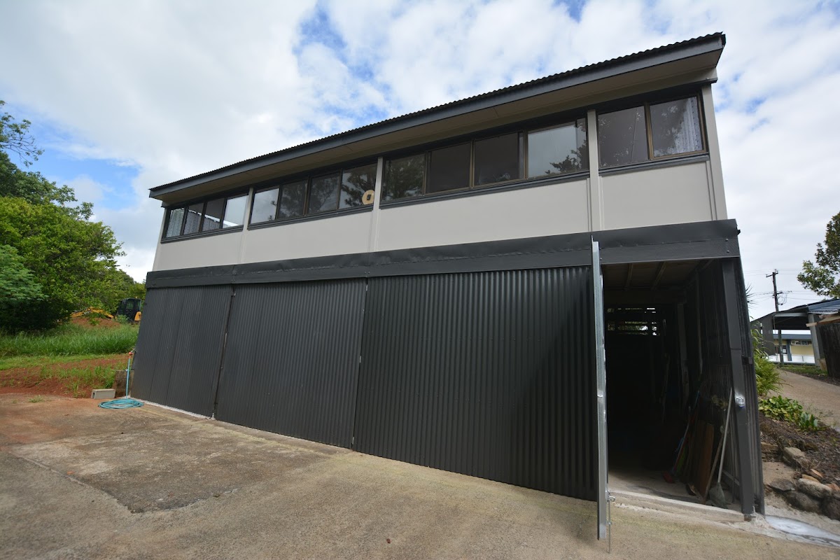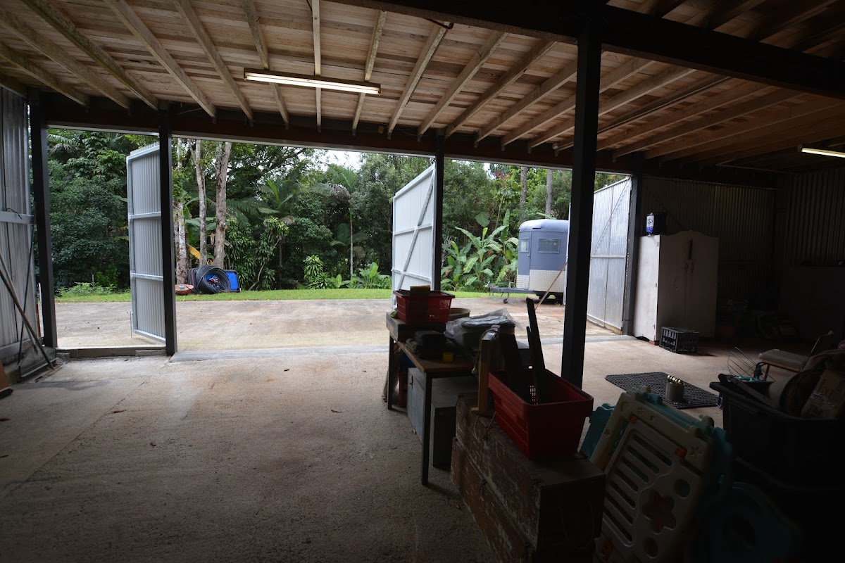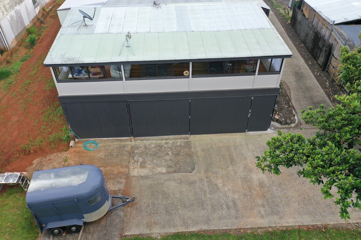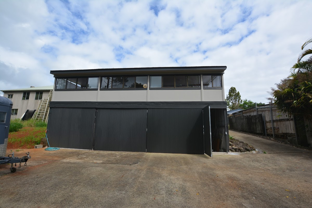 The back half of the home has a ground level which is being used as a workshop / carpark. It has 3 large bays, power, lockable and a concrete floor.