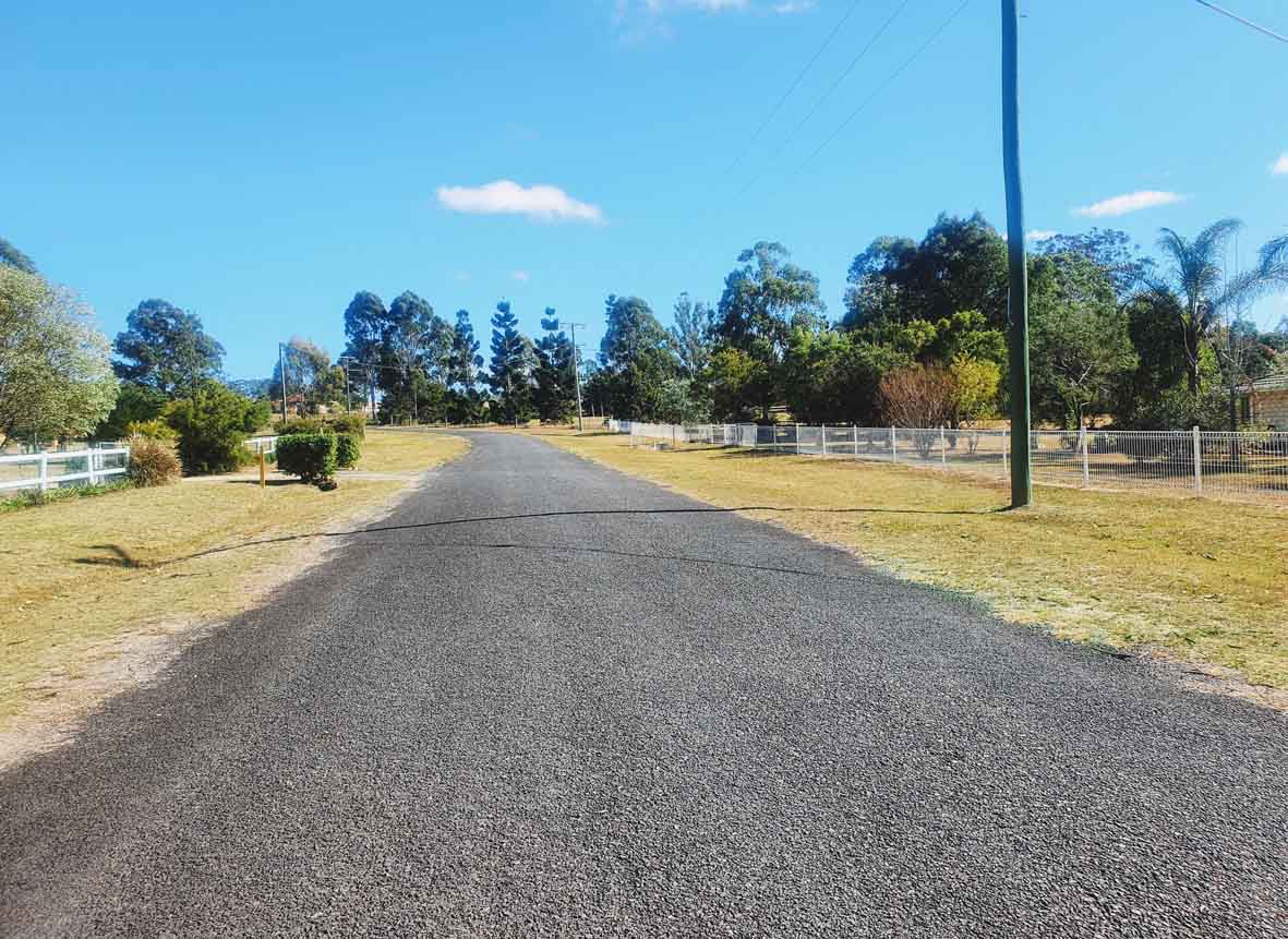 Easy 2 minute commute on a bitumen Rd to the Crows Nest CBD and local Winery.