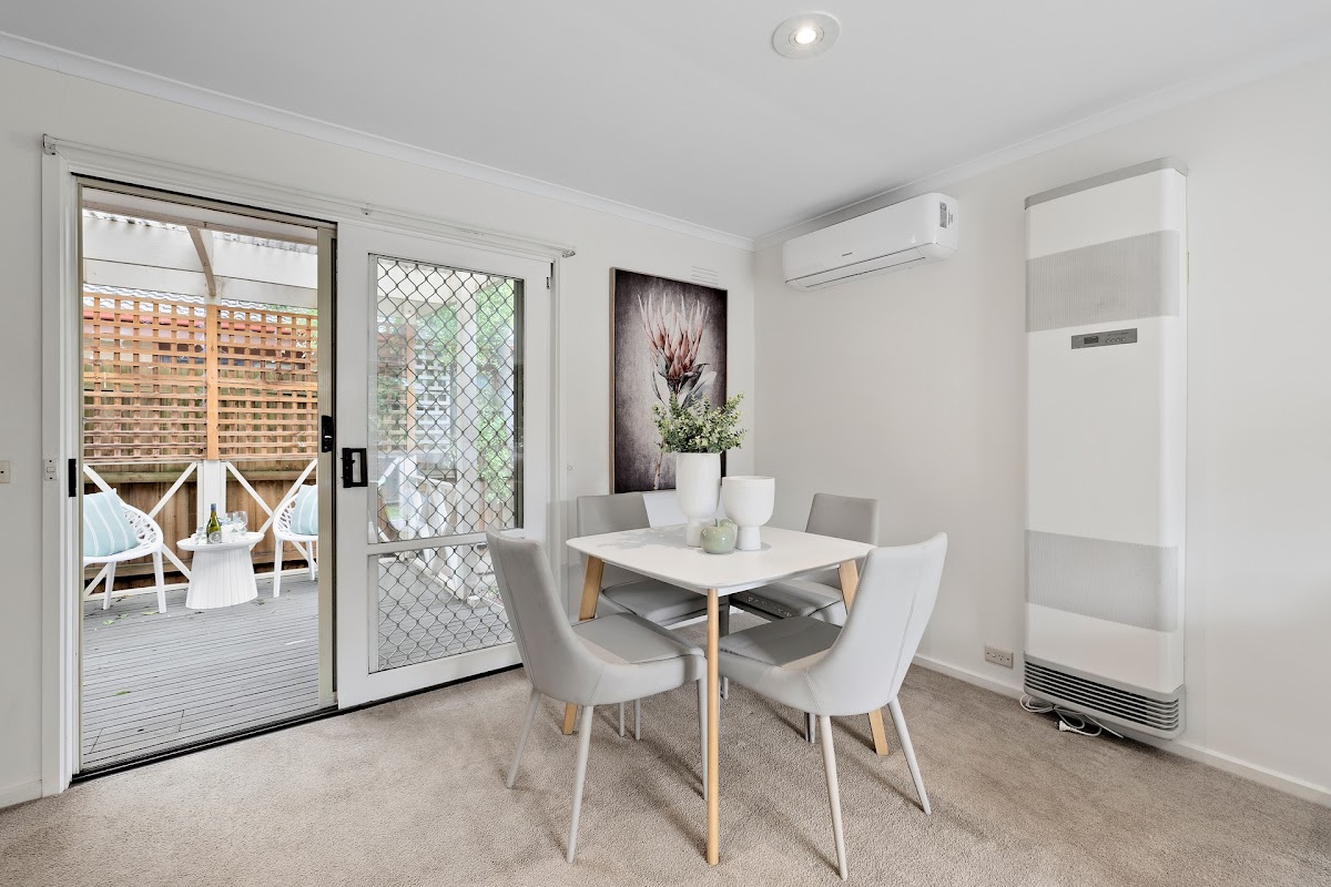 Instantly inviting, the living room upon entry features plush carpet underfoot, through to the spacious meals zone, where sliding doors open up to a private covered alfresco and courtyard under the shade of a leafy tree canopy. Cooking is a breeze in the well-appointed kitchen complete with tiled floors, timber benchtops and a freestanding cooktop and oven, and a dedicated laundry is tucked behind offering easy access to the rear courtyard. Two plush bedrooms include built-in robes and share the central bathroom, with split system heating and cooling and a wall heater in the living zone ensuring comfort year-round.
