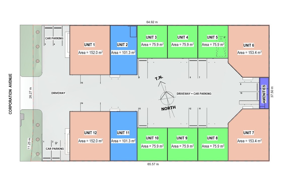 A unique opportunity exists to pre purchase into a brand new master built factory complex. This factory unit is 75sqm approximately and constructed from pre cast concrete with all the services and amenities provided. Additionally the complex with be gated for peace of mind and fully landscaped.