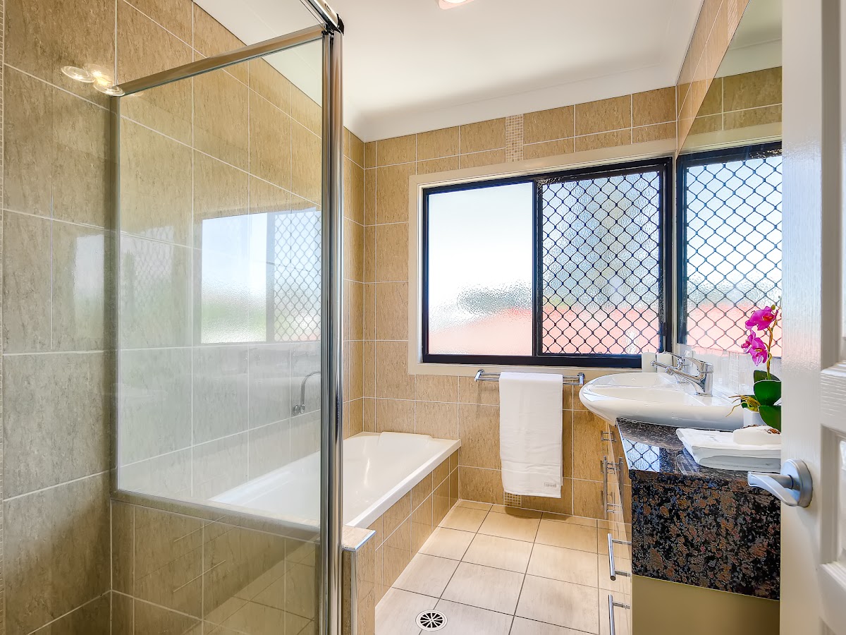 •Main bathroom with bath, separate shower & granite benchtops