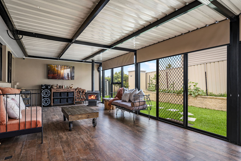 – Fully enclosed entertaining area equipped with floor to ceiling windows & a cozy combustion fireplace