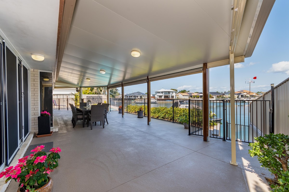 This is a spectacular light and airy renovated home with cathedral ceilings built on a large 832 sqm south westerly canal block. With three spacious living areas, four bedrooms, two bathrooms and double garage, this home has lots of space for a large family or for those retirees who want to entertain their family and friends.