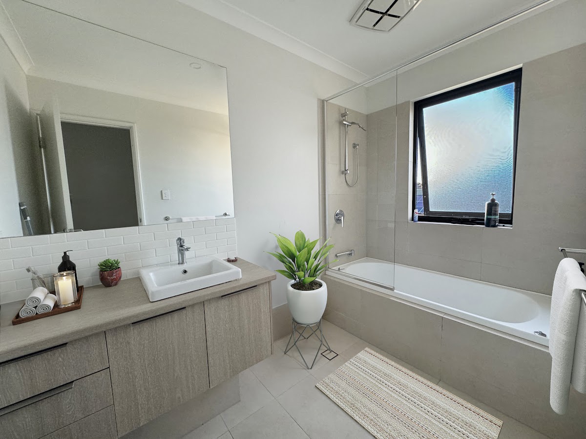 This home has the perfect balance of style and functionality. Each bedroom is generously sized and features high ceilings and quality carpets, with large windows that flood the rooms with natural light. The master bedroom, located on the ground floor, includes a walk-in robe and a semi-ensuite bathroom. The bathrooms are contemporary, showcasing minimalist lines, neutral colour schemes, large mirrors, and premium vanities. The family bathroom also includes a luxurious bathtub, perfect for unwinding after a busy day, while a separate toilet adds an extra layer of convenience.