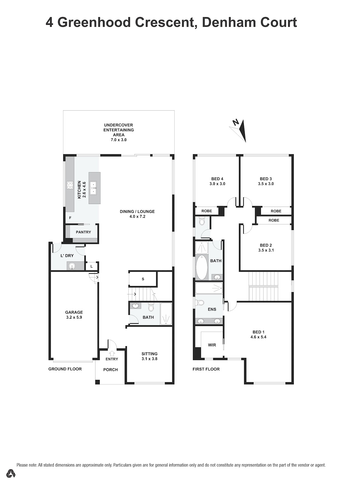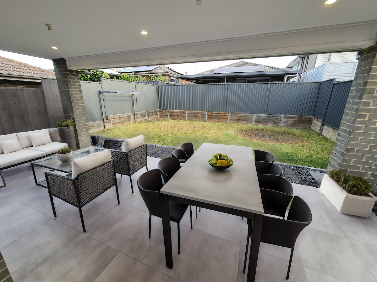 The ground floor features two expansive living areas that transition effortlessly to a fully tiled alfresco space and a landscaped backyard, designed for low maintenance and maximum privacy, with the potential for a swimming pool (STCA). The alfresco area is perfect for outdoor dining and entertaining. Inside, the dining area provides a comfortable space for family meals and gatherings.