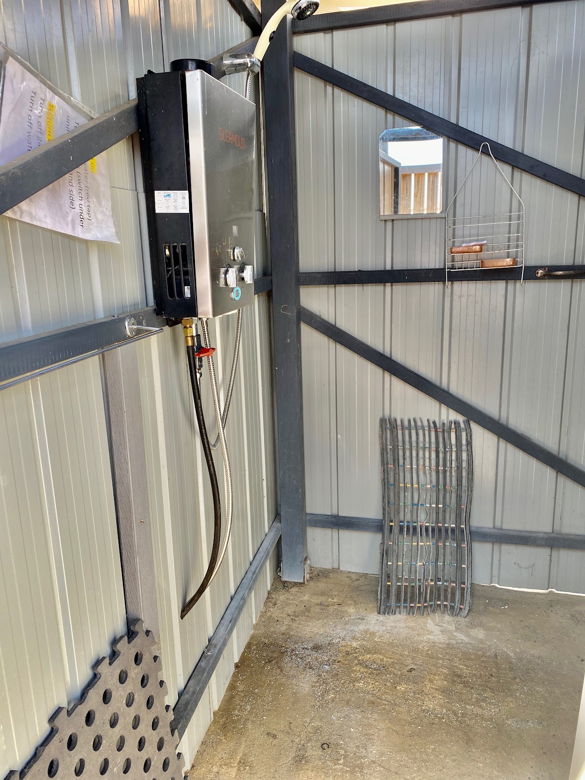 * Portable toilet Cubicle ( easily pumped out by local contractor )