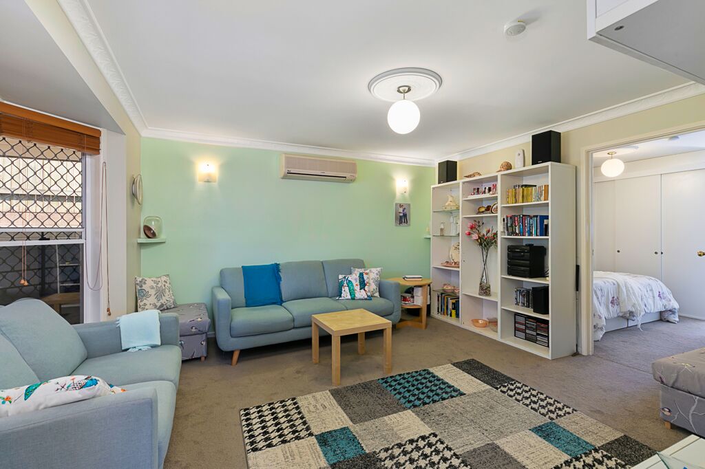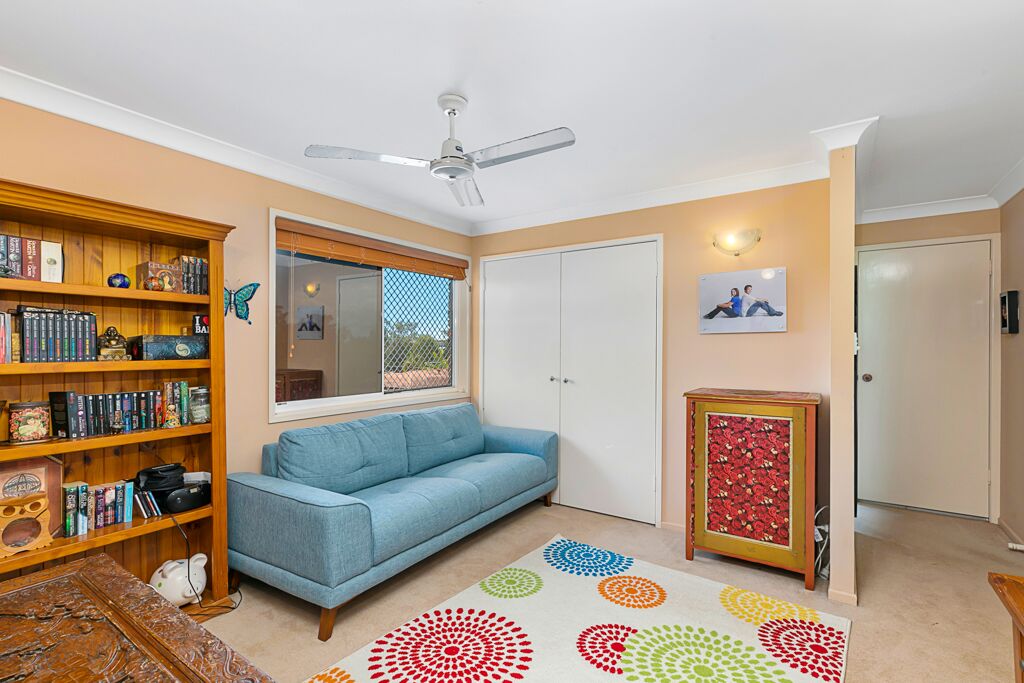 Upstairs features the home’s third distinct living zone, with the large air-conditioned main bedroom.