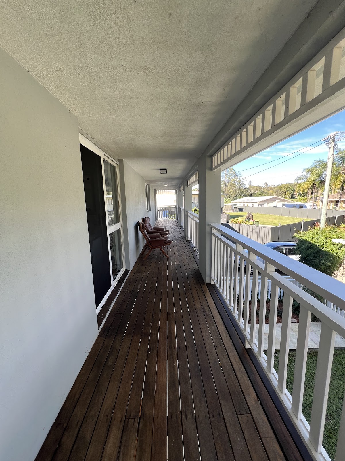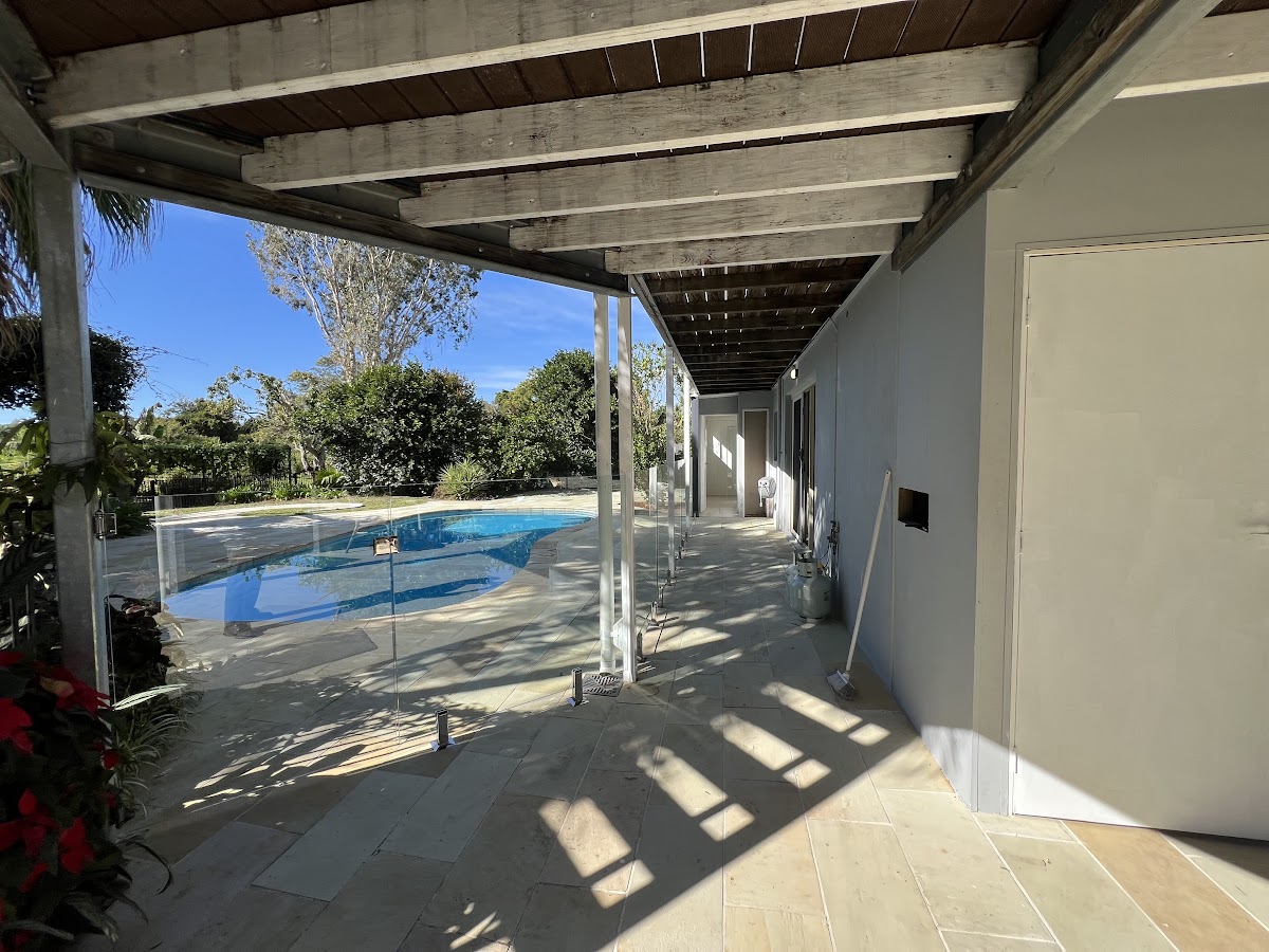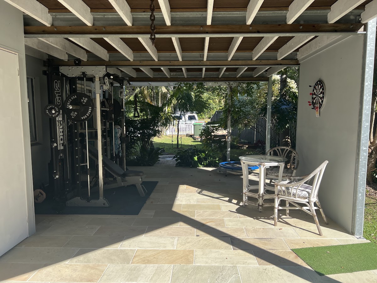 2 verandahs downstairs , under cover gym area plus a relaxing covered area with seats by the swimming pool.