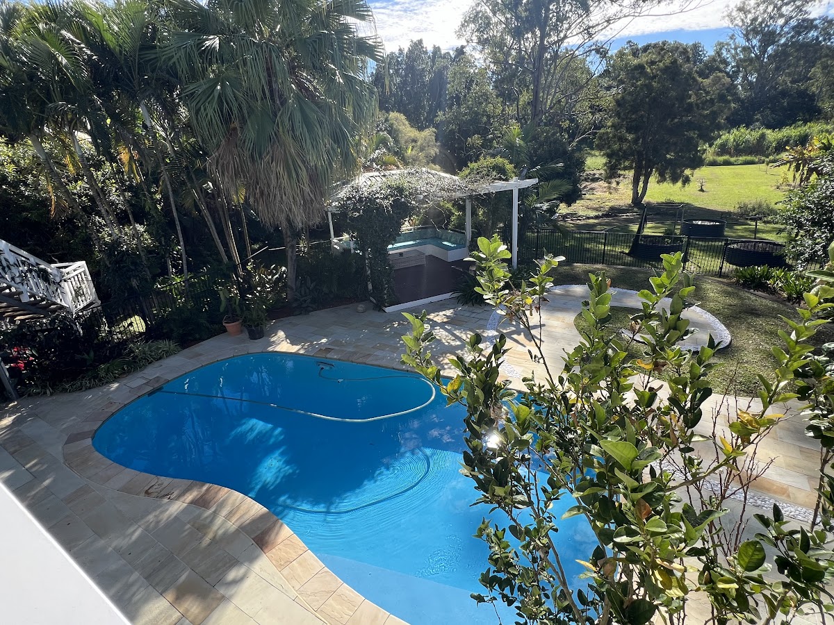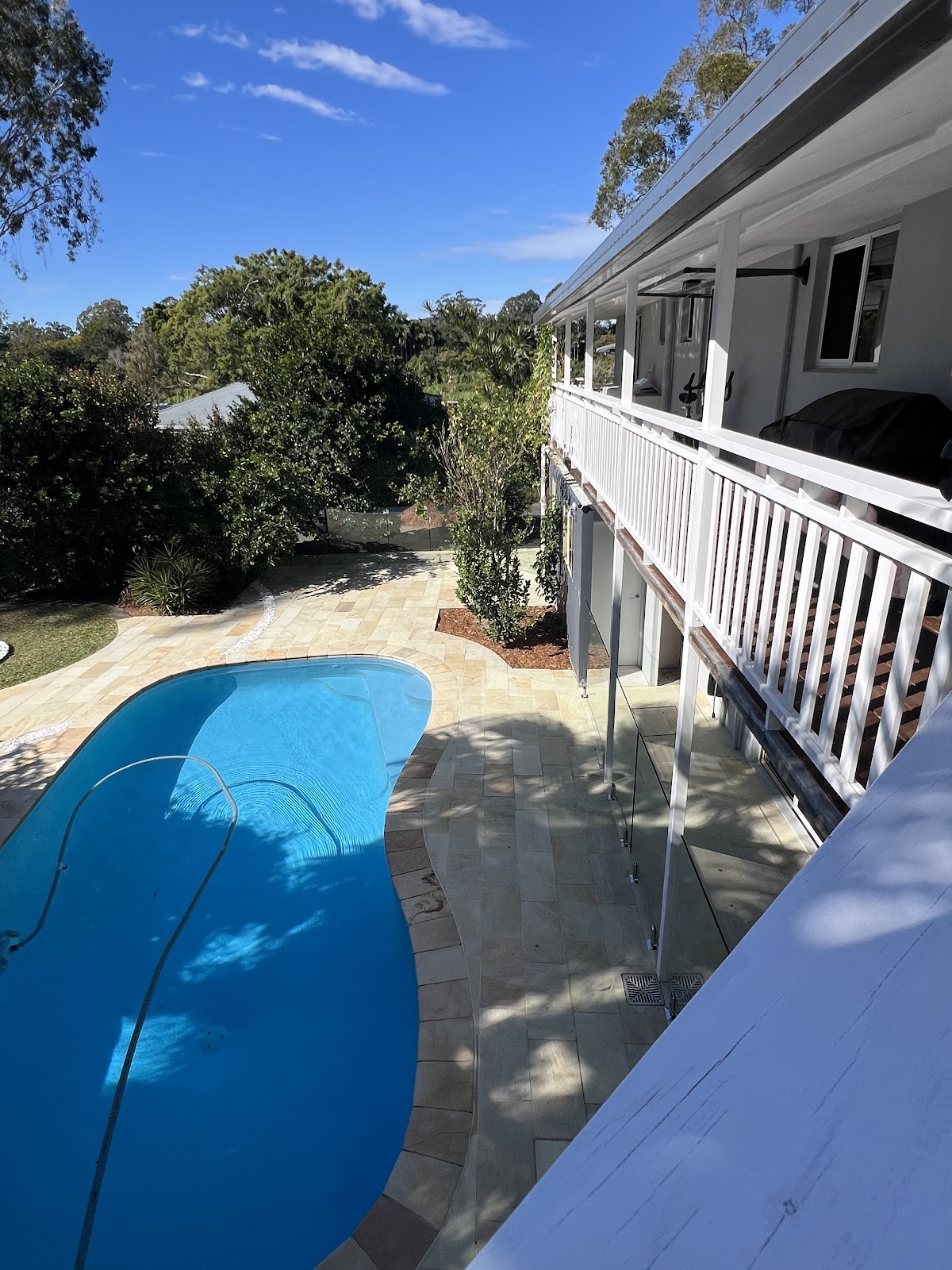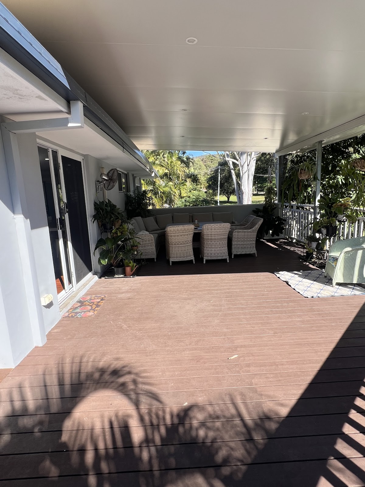 2 verandahs downstairs , under cover gym area plus a relaxing covered area with seats by the swimming pool.