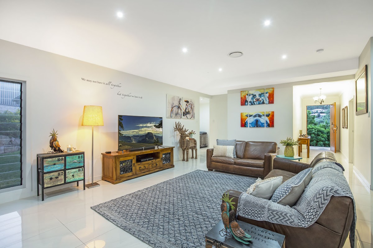 Drag yourself away from that view and enter the home through the grand oversized timber pivot front door and you are greeted with the open plan hub of the home which quite literally unfolds as you walk in! The gourmet kitchen will impress the chef of the family with an induction cooktop, large electric oven, built in microwave, dishwasher and massive walk in pantry. The impressive Granite benchtop island will be well utilised as a discussion point catching up on the day’s happenings, homework etc.