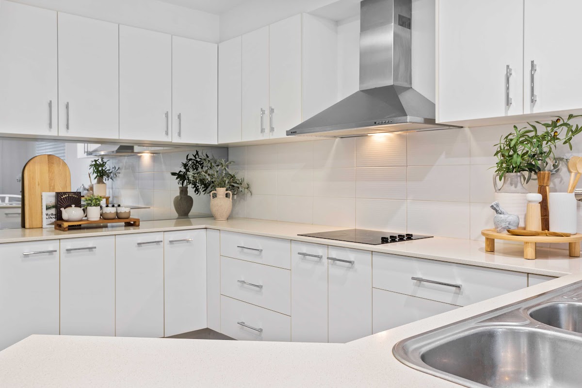 · Modern kitchen with stone benchtops including premium Blanco, Bosch and LG appliances;