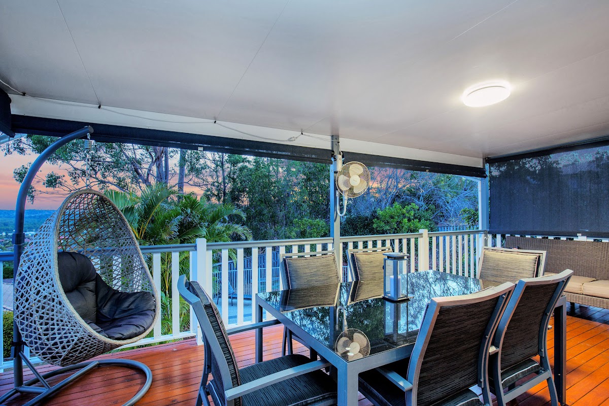 * Large veranda with roll down privacy screens outdoor electric heater and wonderful views