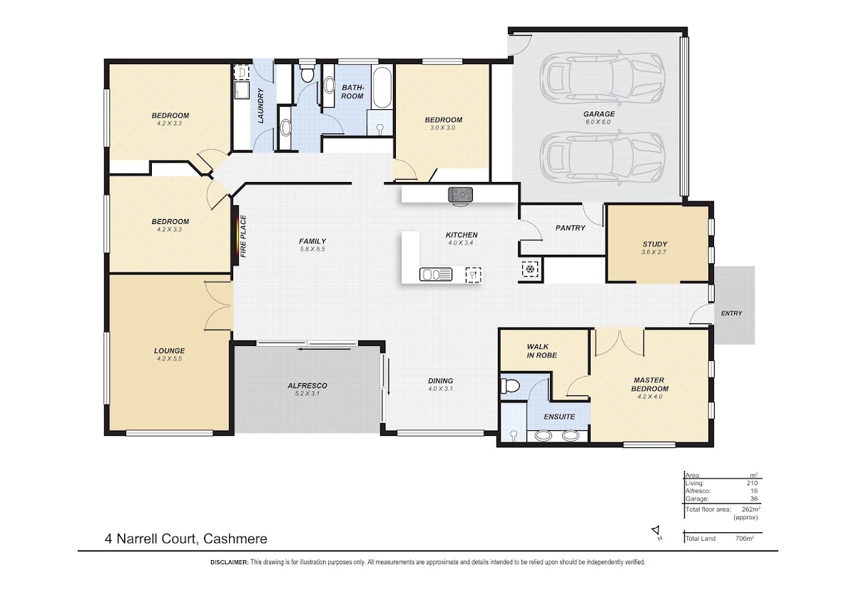 • Four big bedrooms with the master offering a walk-in robe, air-conditioning, ceiling fan and lavish ensuite with twin basins, a shower, and a separate toilet
