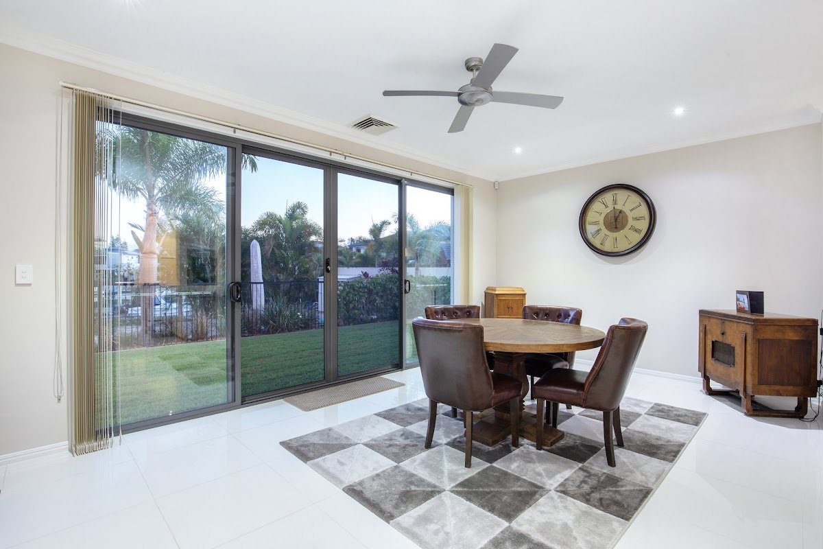 The absolutely huge master bedroom with balcony affords sweeping water vistas and is complimented by an amazing en suite with his/hers dressing rooms. Outdoor entertaining is made easy with effortless flow over manicured lawns to the in ground 10m swimming pool and canal with pontoon.