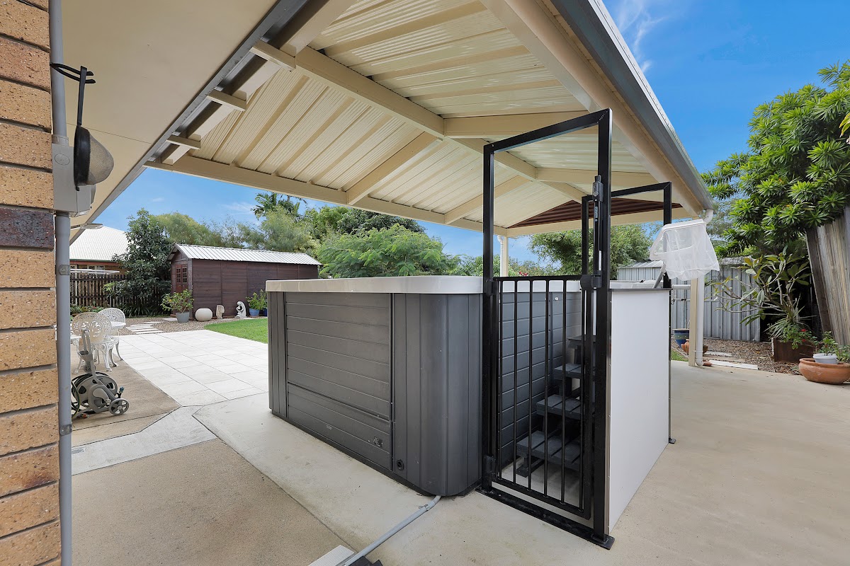 Absolutely nothing to do but move in and enjoy this amazing coastal home at Slade Point. Constructed of solid brick with 3 built in bedrooms, fully renovated kitchen and bathroom, modern appliances and full crimsafe security screening throughout the entire home. All 3 bedrooms have plantation shutter blinds, new ceiling fans, modern, vinyl floor planking and split system airconditioning. The living area also has plantation shutter blinds, split system air and the stunning kitchen with deep, soft close drawers and modern appliances overlooks the lovely landscaped gardens and swim spa to the rear of the property. Step out to a gorgeous entertaining area which also boasts plantation shutters and an extra high fence for complete privacy. It also has a second toilet with vanity and an outdoor shower for the kids after a swim or the greenfinger after gardening. If you like to paint or need a craft room, guest room, separate office or just extra storage for the bikes etc, there is a fully lined, insulated and airconditioned, separate studio room that should accommodate all your needs. There is so many extras to this home including solar panels, extra built in cupboards to the laundry, undercover awning for the swim spa, lawn locker, fully fenced yard and all of this is just steps to shops, medical centre, Chemist, Daycare, school, parks, restaurants, and the beach. If you like fishing or crabbing, the boat ramp is just a 2 minute drive and there is room down the side to house a small boat. So much extra has been spent on this one and the very genuine seller is relocating and looking for all genuine buyers to inspect now. Call Jodie and expect to be pleasantly surprised. Rates $1,800 per half, Estimated Rental Return $720 to $750 p/w
