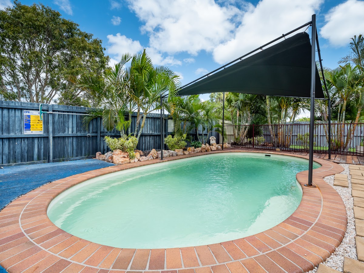 There are two bathrooms and a large undercover area which runs the full length of the back of the home. This is well connected to the kitchen/living spaces and overlooks the in ground pool.