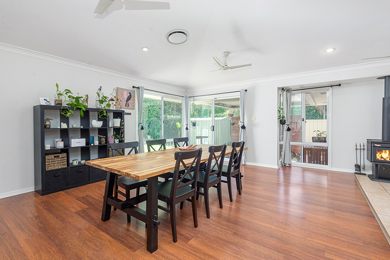 The home is unassuming from the front but once you step inside, you are drawn in by the easy flow design giving you a feeling of comfort and style. There is a room for every occasion with the heart of the home being the spacious kitchen, dining, living area which spills out into the outdoor entertaining area. Here you can just sit and relax whilst looking out over your very private backyard, taking in the natural surrounds or just enjoy watching the kids and fur babies run and play in the security of this fully fenced yard.