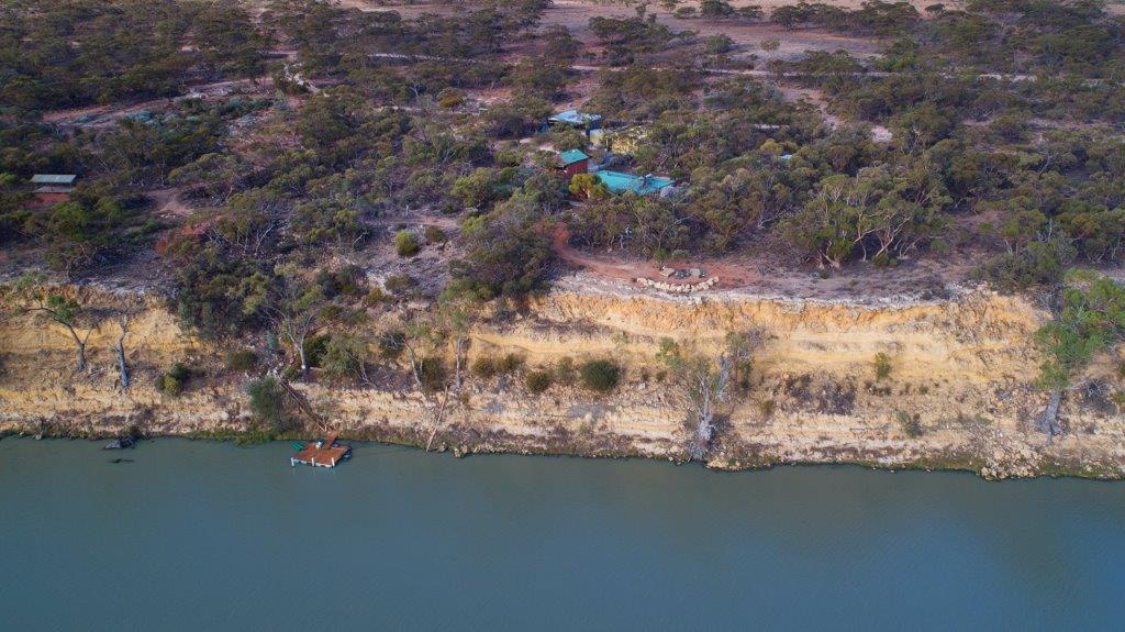 Nestled amongst Eleven acres of old growth Mallee on cliffs with access to river and overlooking a remote part of the River Murray is this amazing secluded setting.