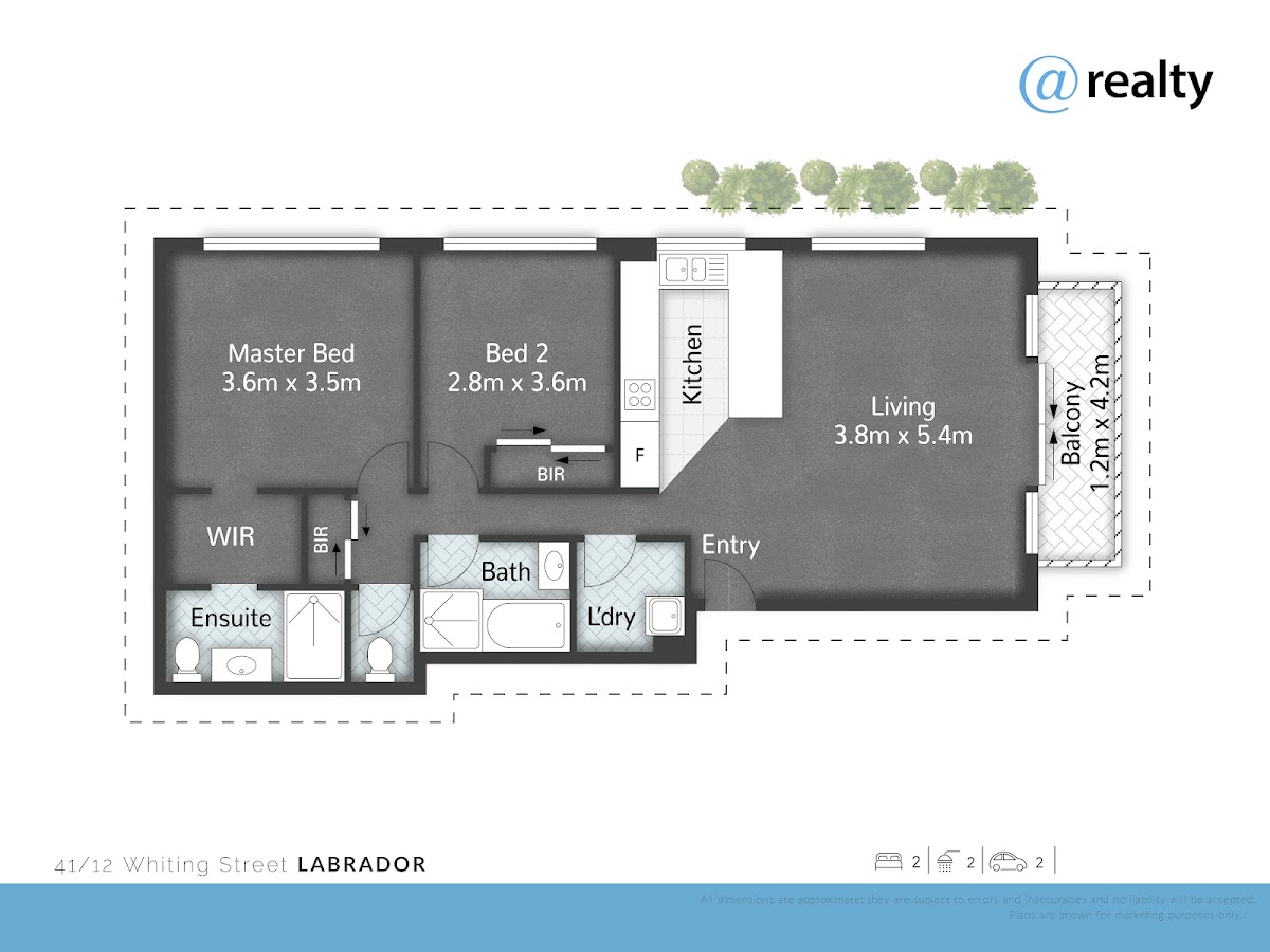 2 ample bedrooms both with ceiling fans, master bedroom ensuite and WIR