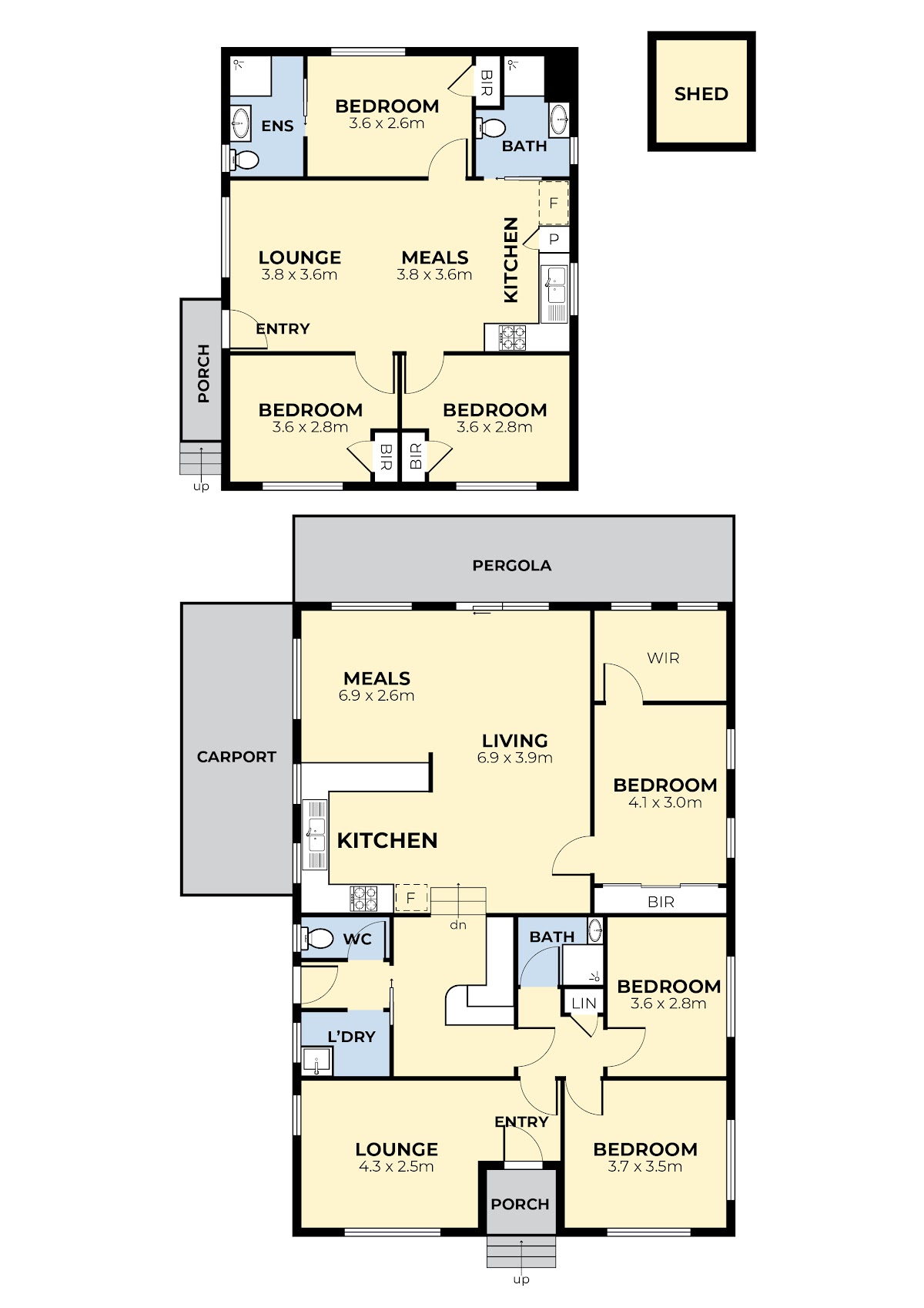 * Bungalow – 3 bed (All with BIR) 2 bath