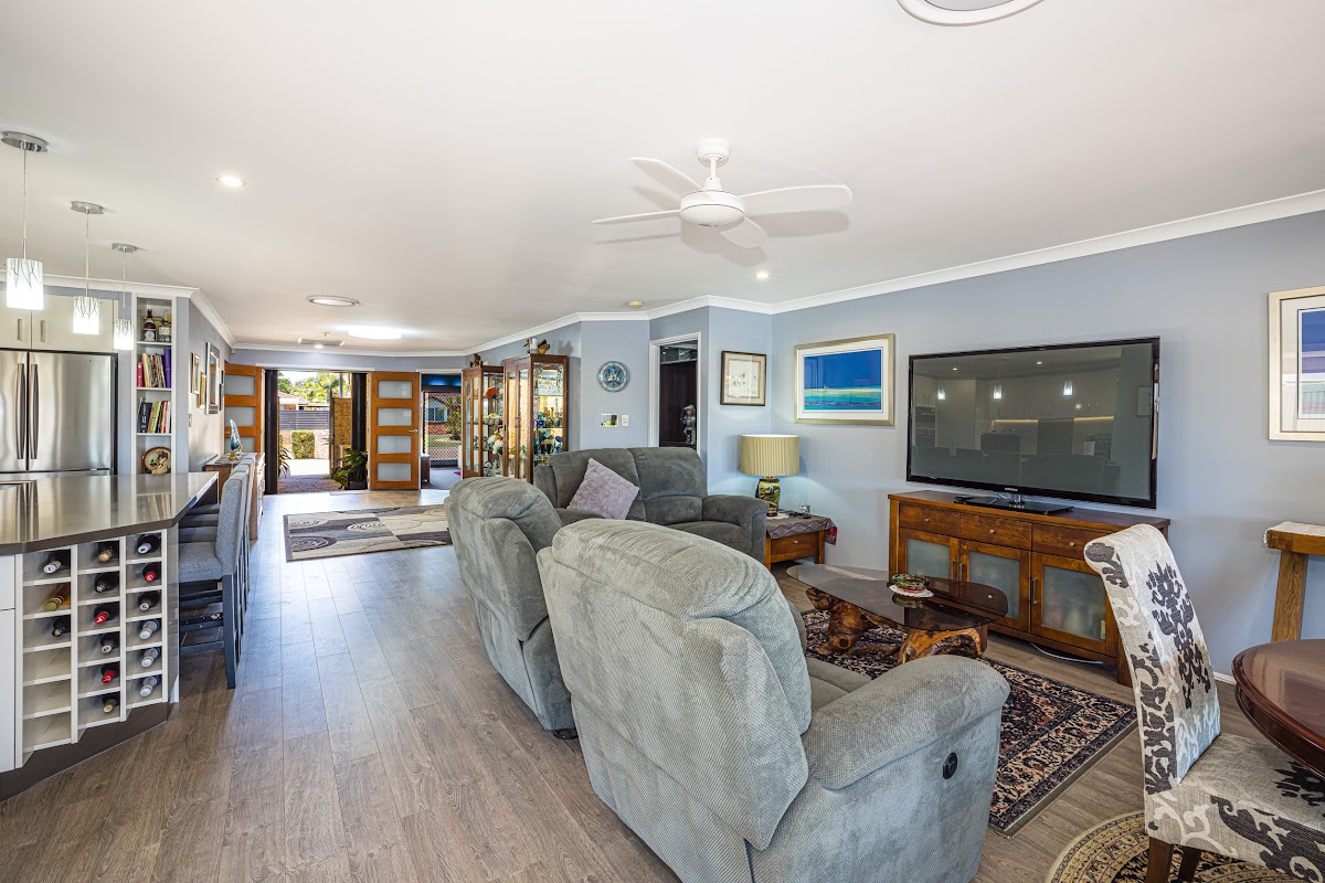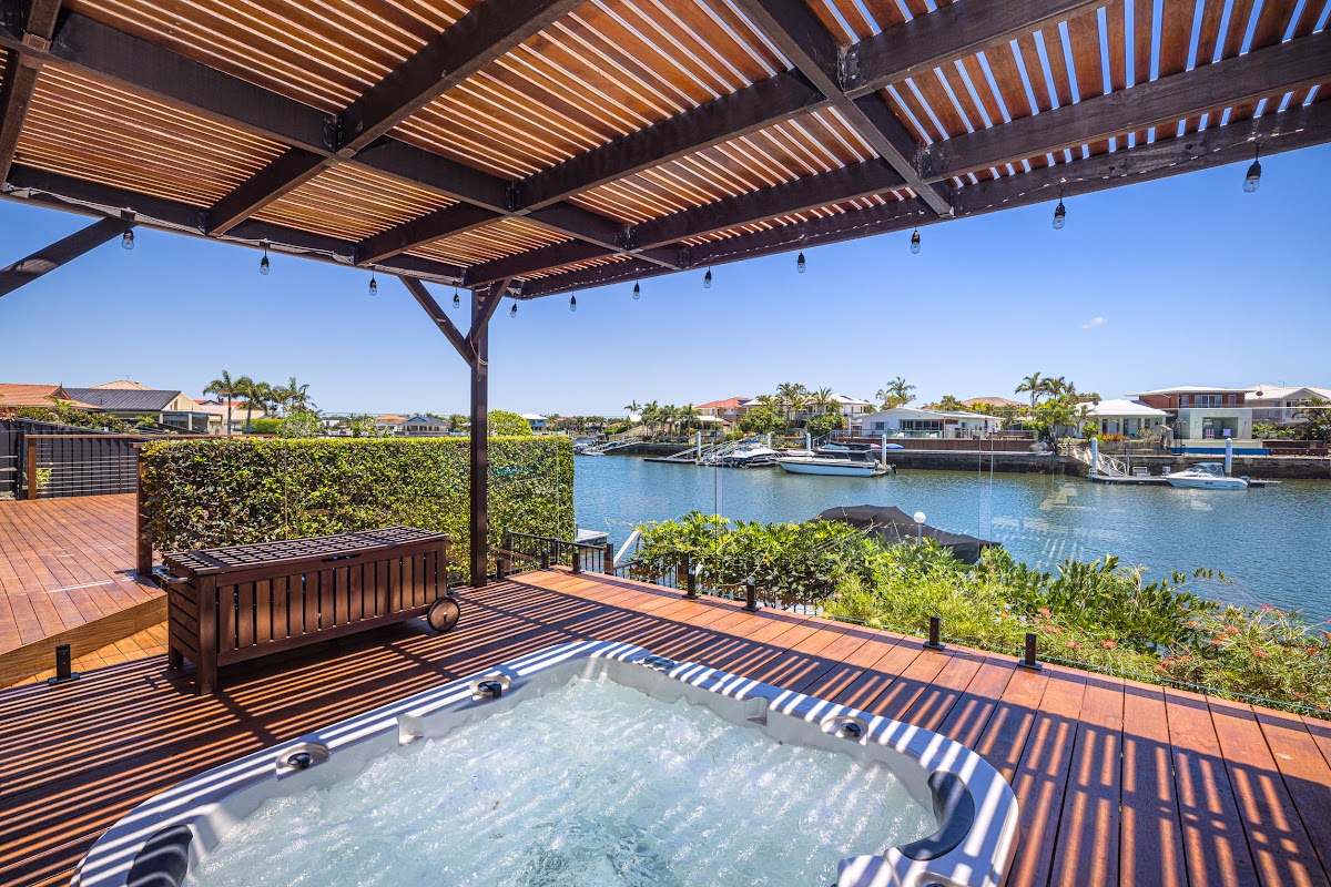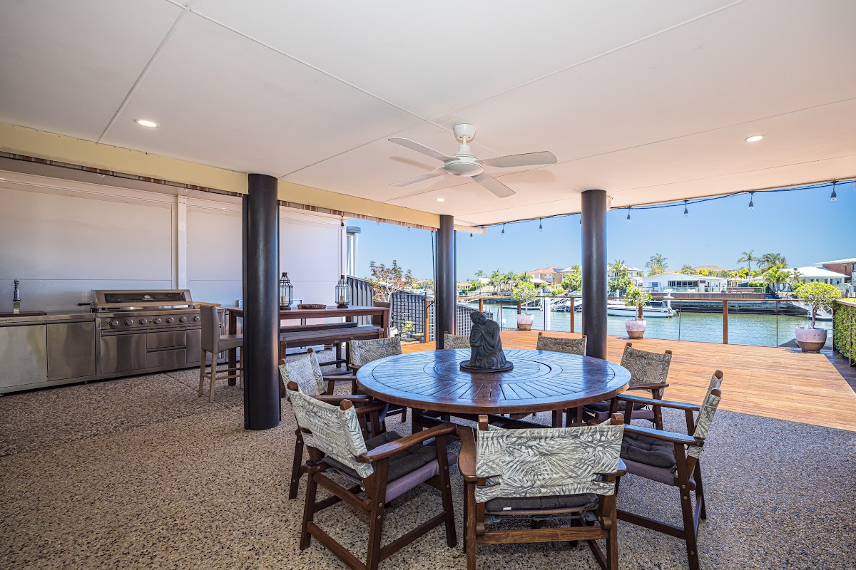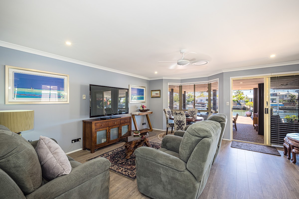 This is a spacious open plan renovated North facing home built on a 614 sqm block. With numerous outdoor covered entertainment areas overlooking spectacular wide angle canal views it’s an entertainer’s delight. Need room to store your caravan? Look no further plenty of room here.
