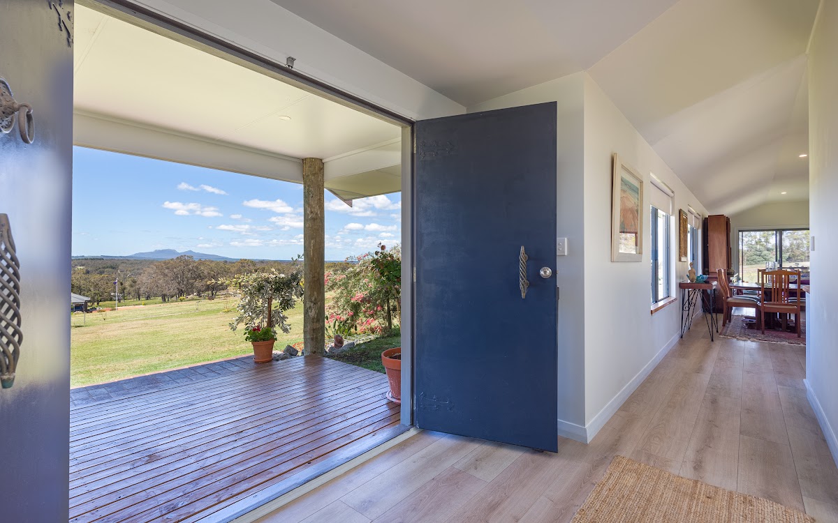 Formal entry is off an elevated landing on the eastern side of the home. From here you can enjoy a cool summer breeze or admire the stunning view east to the Porongurup Range before stepping into the centrally located, light flooded portico entry of the home.