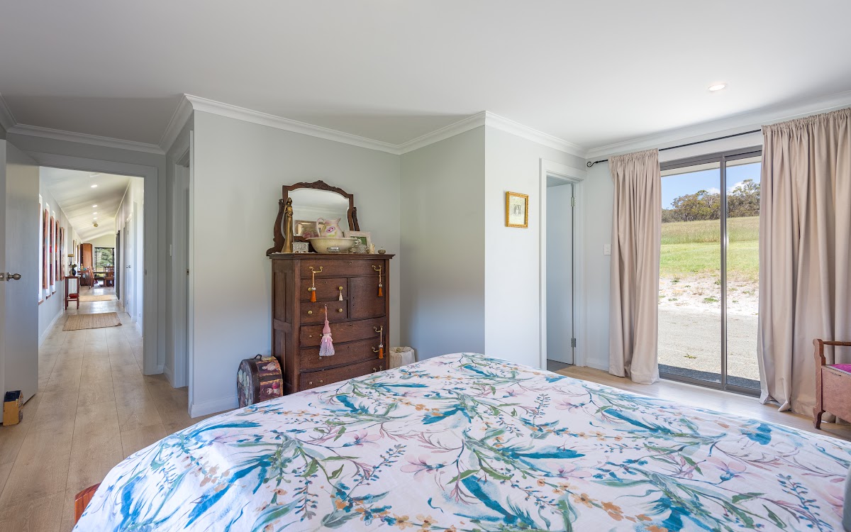 The northern wing of the house comprises bedrooms and wet areas. The master suite offers a picturesque window view to the east, sliding door access to the west, an ensuite and a WIR.