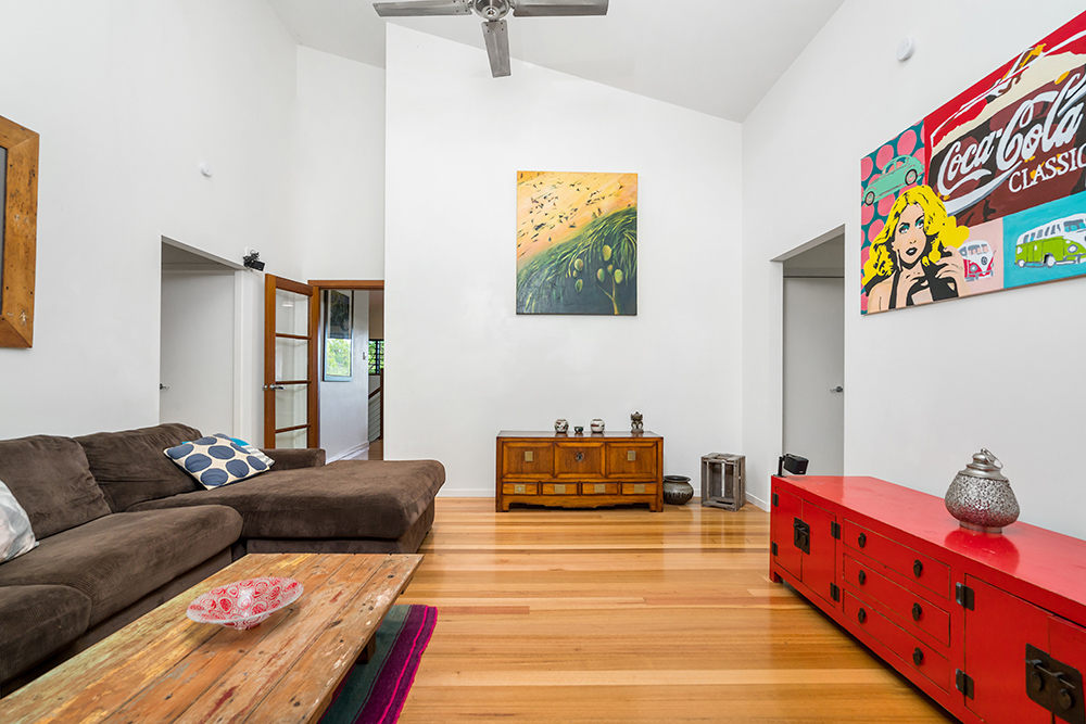 This stunning home was built by Phil Anstey, master builder, approximately 15 years ago and exudes quality throughout. The home is carefully positioned on the elevated block to capture the stunning view over the showgrounds and Bangalow village. Designed with a growing family in mind, the clever split-level floor plan offers upstairs, two living areas and four generous bedrooms all with built-ins and downstairs, a huge office with its own access plus double lock up garage. Timber floors and high ceilings throughout enhance the spacious feel of the home. At the front of the home is a wide, covered timber verandah overlooking the easterly view. It’s generous in size with plenty of room for an outdoor lounge and table setting. At the rear of the home is another covered deck and landscaped gardens surrounding the sunny pool area. Overall, this home has it all…including solar hot water and a ducted vacuum system! In a highly desirable location, it is also just a short stroll into the Bangalow village.