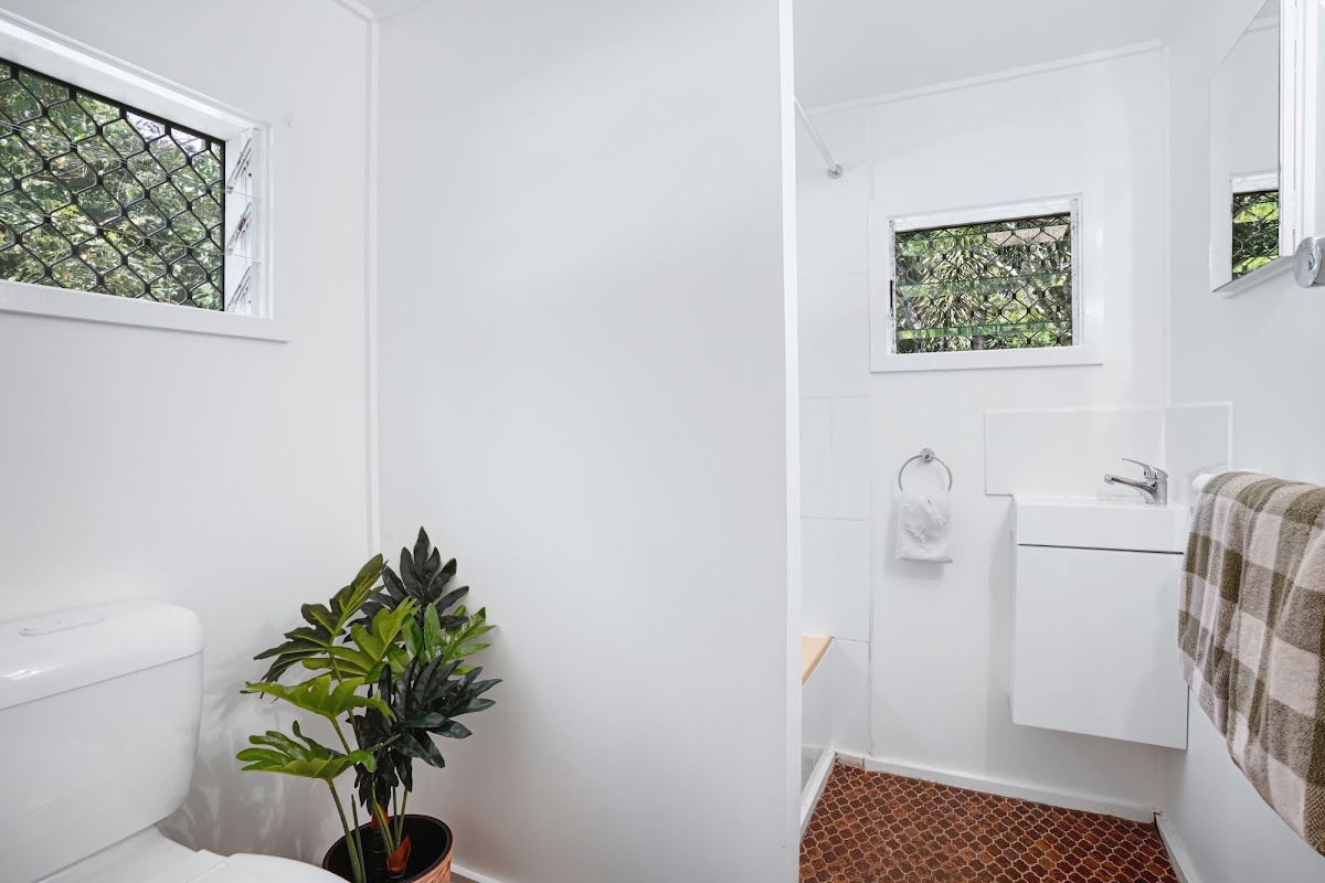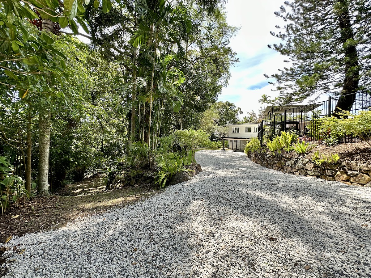 Very private and quiet oasis surrounded by large rainforest trees set high in Stratford with glimpses of the coral sea and Barron River.