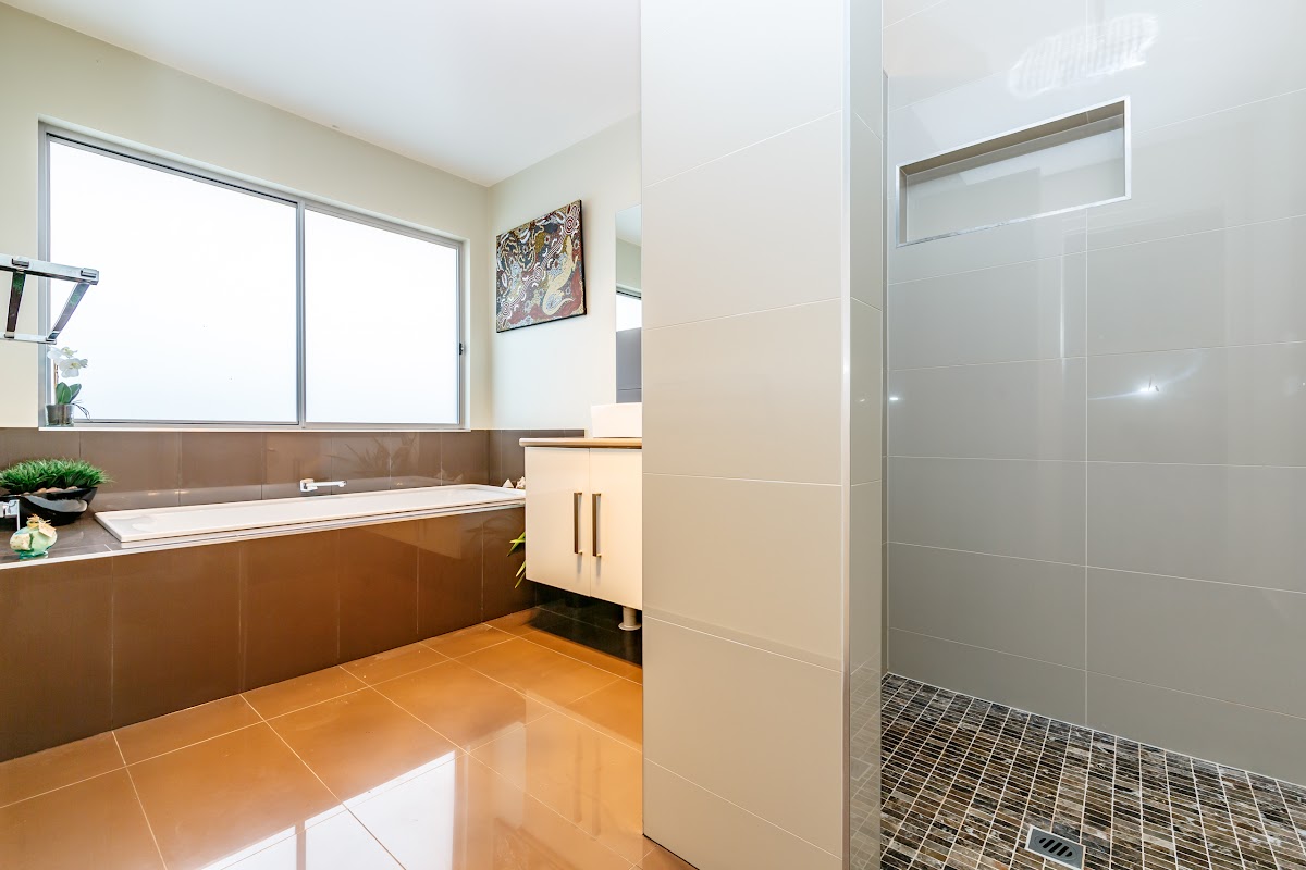 There are 3 extra large bedrooms with very decent sized built in floor to ceiling wardrobes with built in shelves, draws and rails, and the master bedroom is complete with a huge walk in wardrobe with a specially crafted 5 tier shoe rack. An executive style ensuite with double walk in shower and large wall hung vanity with double sinks is a great draw card.